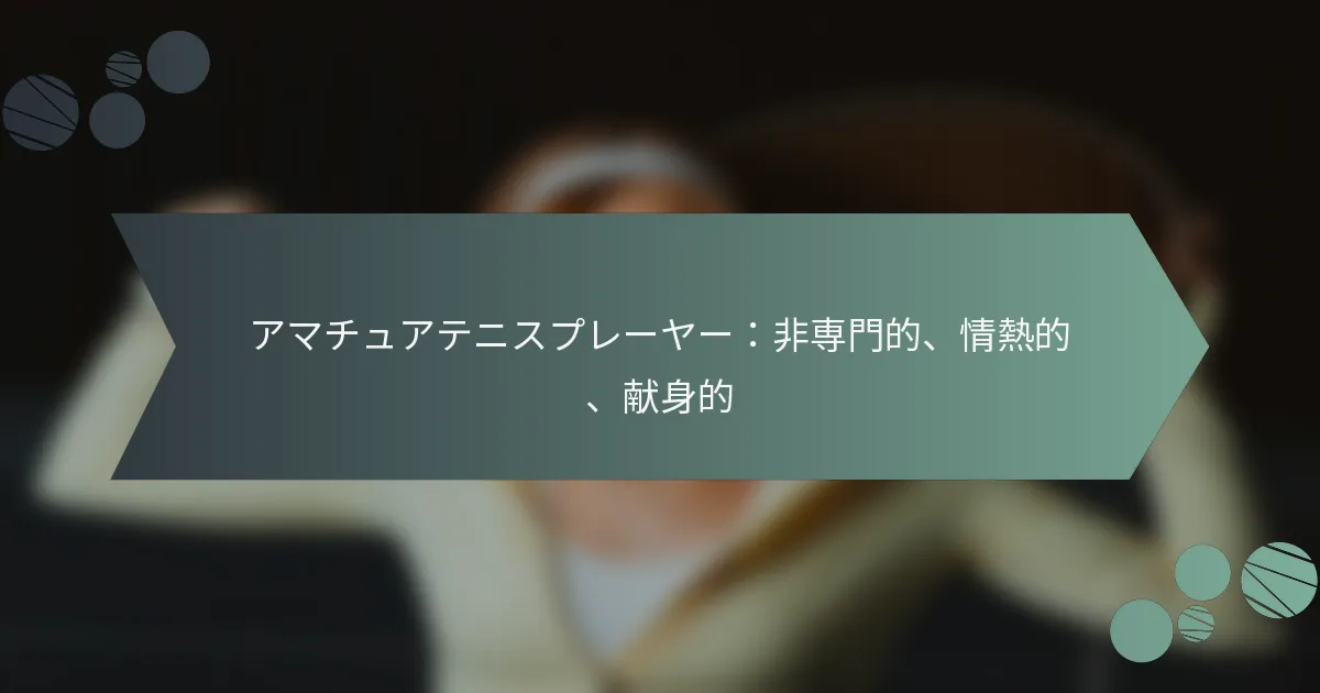 アマチュアテニスプレーヤーは、献身的な練習、効果的なトレーニング技術、そしてメンタルレジリエンスに焦点を当てることでスキルを向上させることができます。現実的な目標を設定し、一貫性を保つことで、プレーヤーは徐々にパフォーマンスの改善を実感できます。