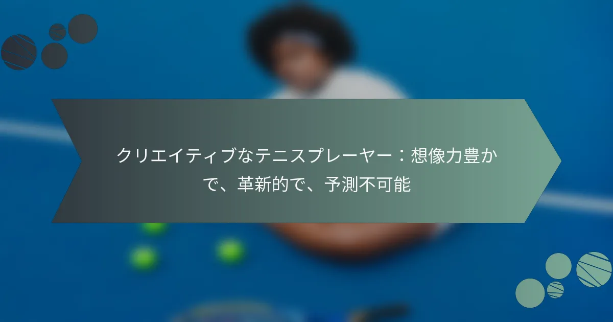 創造的なテニスプレーヤーは、想像力豊かなショットメイキング、革新的な戦略、そして予測不可能なスタイルによって区別されます。これらのプレーヤーは、伝統的な技術と個人的なセンスを融合させた独自のアプローチで観客を魅了します。