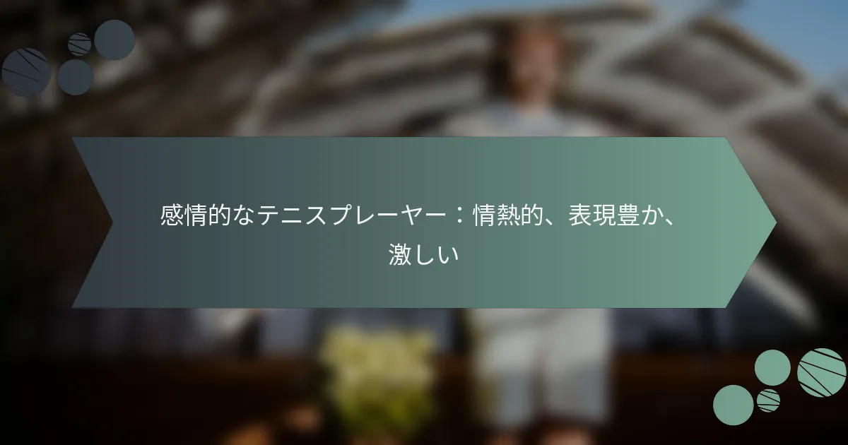 感情豊かなテニス選手は、その情熱、表現力、そして強度によって定義され、これらはパフォーマンスや試合の雰囲気に大きな影響を与えることがあります。これらの選手はしばしば高まった感情的反応を経験し、それが彼らのモチベーションや集中力に影響を与えるため、感情のコントロールがコートでの成功にとって重要です。ラファエル・ナダルやセリーナ・ウィリアムズのようなアイコンは、このダイナミクスを体現しており、深い感情がファンに共鳴し、スポーツを高める様子を示しています。