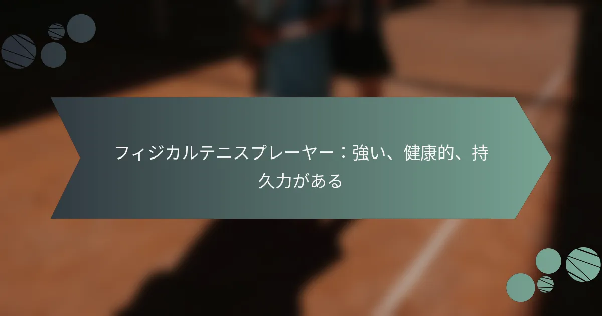テニス選手に必要な身体的特性には、力、心肺フィットネス、敏捷性、柔軟性、持久力が含まれます。これらの特性は、コート上での最適なパフォーマンスに不可欠であり、選手が強力なショットを打ち、長時間の試合中にスタミナを維持し、相手の動きに迅速に反応できるようにします。