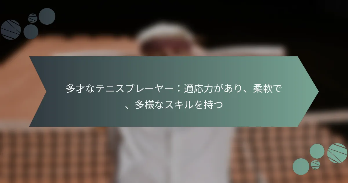 多才なテニスプレーヤーは、さまざまな試合状況に適応するためのスキルを持っています。主要なスキルには、多様なショット選択、戦略的思考、身体的コンディショニング、感情的なレジリエンス、相手を効果的に読む能力が含まれます。これらの分野をマスターすることで、プレーヤーのコート上での適応力が向上します。